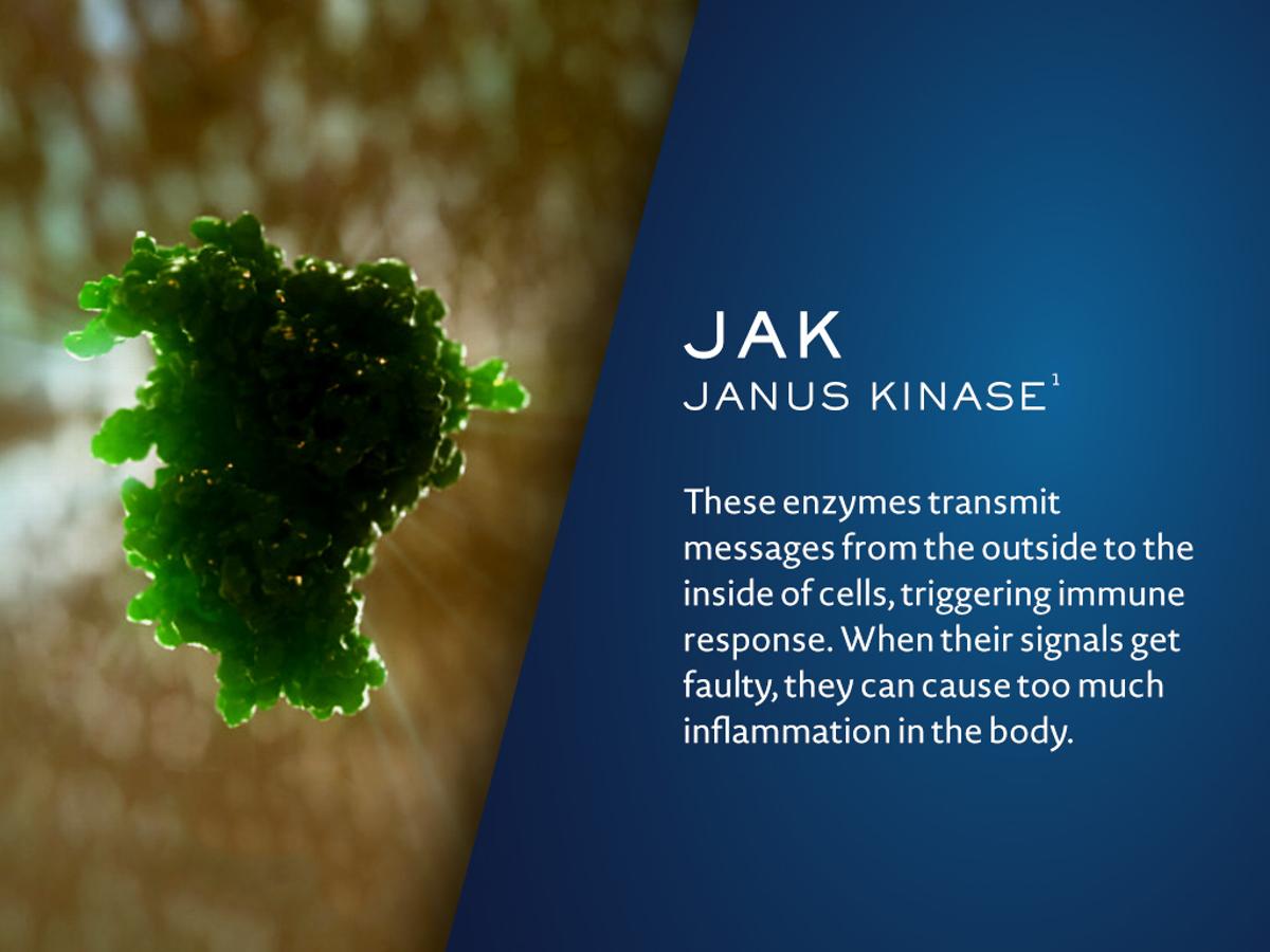 艾伯维(AbbVie)免疫学研究副总裁丽莎·奥尔森(Lisa Olson)解释说:“风湿性关节炎患者有自体免疫细胞,这意味着这些细胞会对抗他们的身体。”“在这些细胞中,JAK酶传递信号,导致免疫系统攻击自己的关节。”